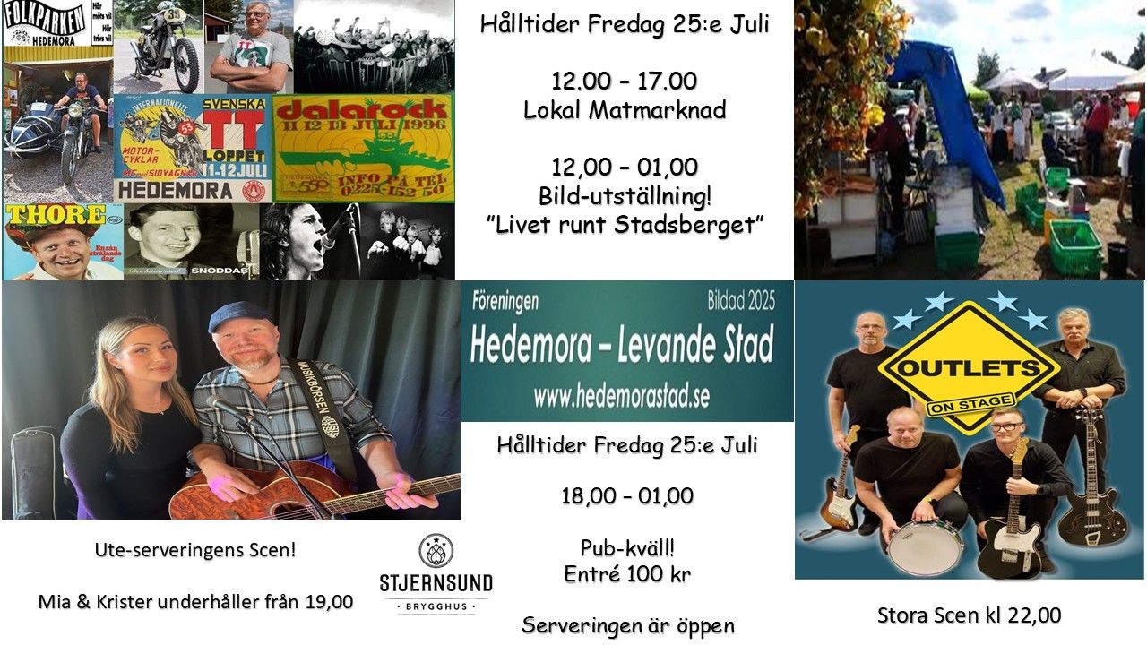 Välkommen till våran "Marknads-Fredag" med Pub-kväll och lite juste musik på både stora scenen och ute-servering på kvällen.